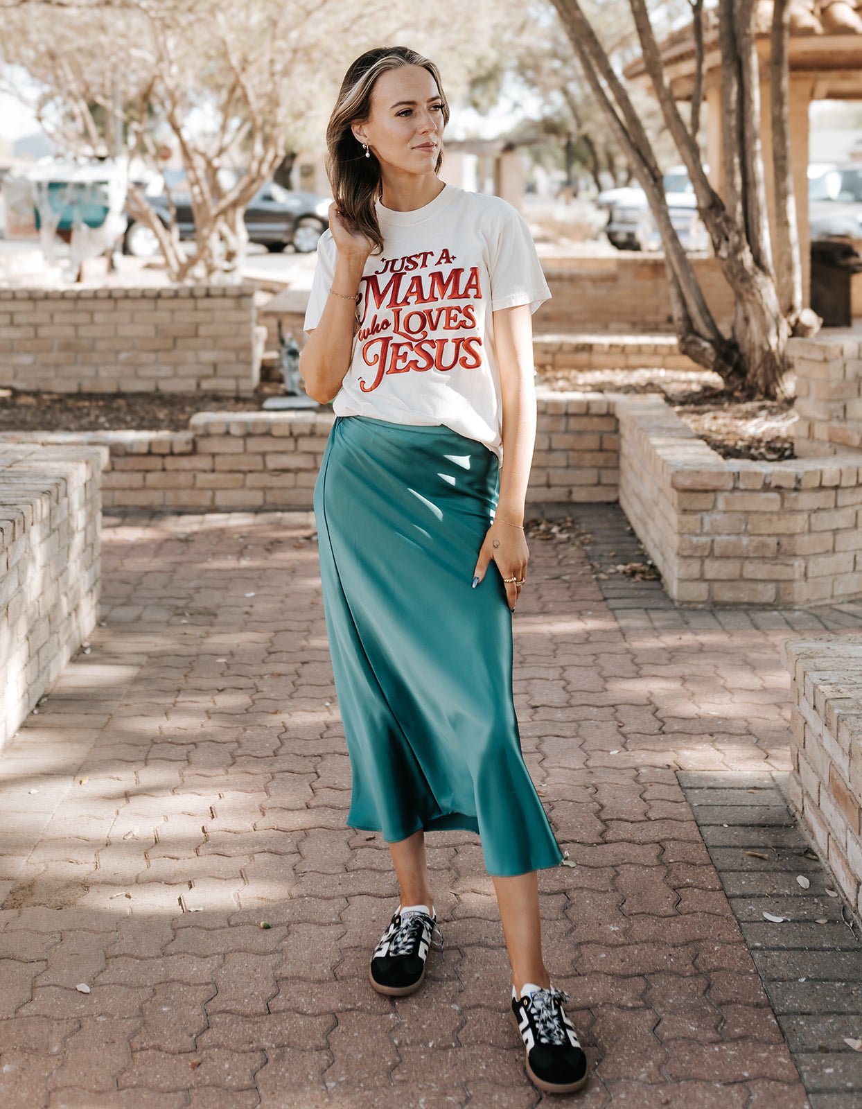 Smooth, sleek, and so easy to style — this satin midi skirt brings a polished feel whether you’re dressing it up or keeping it casual. The flowy silhouette and subtle shine make it a go-to piece for workdays, weekends, and everything in between.