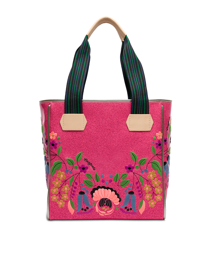 The tote that started it all. The Ivy Classic Tote features Consuela’s signature silhouette with bold floral embroidery on a hot pink glitter exterior. Spacious, structured, and designed to carry it all — this bag is as durable as it is fun.