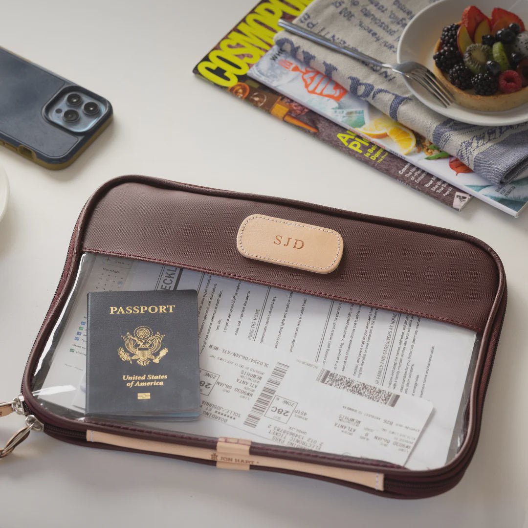 Leave your worries behind & your stress in the folio. The Clear Foilo keeps you organized at work, while traveling and even just around the house! It keeps full sized papers, notebooks, important documents and so much more protected and organized. Also comes in Colored Leather & the JH Cotton Canvas.