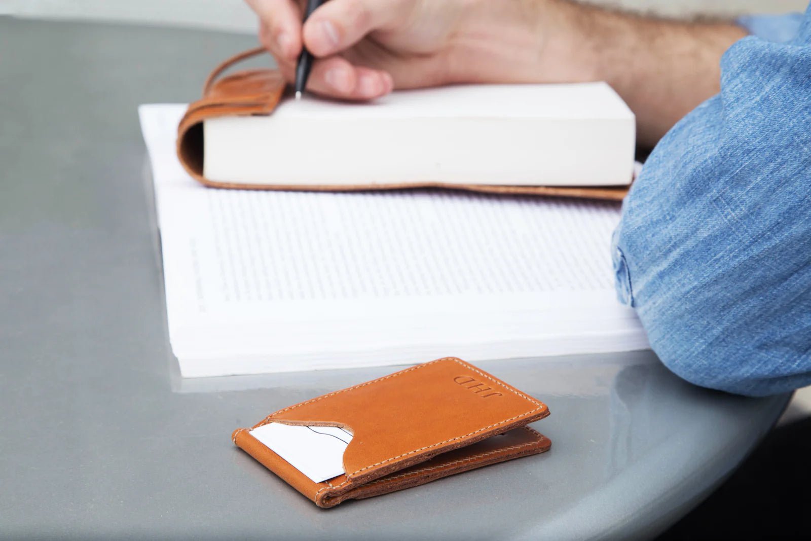 Sleek, simple, and made to last. This all-leather money clip securely holds your cash and cards while maintaining a slim profile that fits easily in your pocket or purse. A timeless everyday essential that pairs function with Jon Hart’s signature craftsmanship.