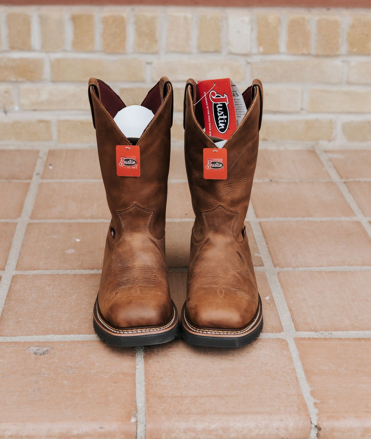 Justin Ames Steel Toe Waterproof Work Boot – Walnut Brown