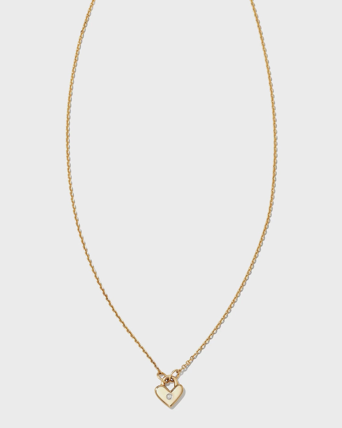 The dainty heart necklace of your dreams. The Tiny Heart Padlock 14k Yellow Gold Pendant Necklace in White Diamond is simple, classic, and playful, making it a staple that pairs perfectly with any accessory and every outfit. We have taken steps to ensure that, when applicable, our diamonds are conflict free by requiring our suppliers to comply with the Kimberley Process.