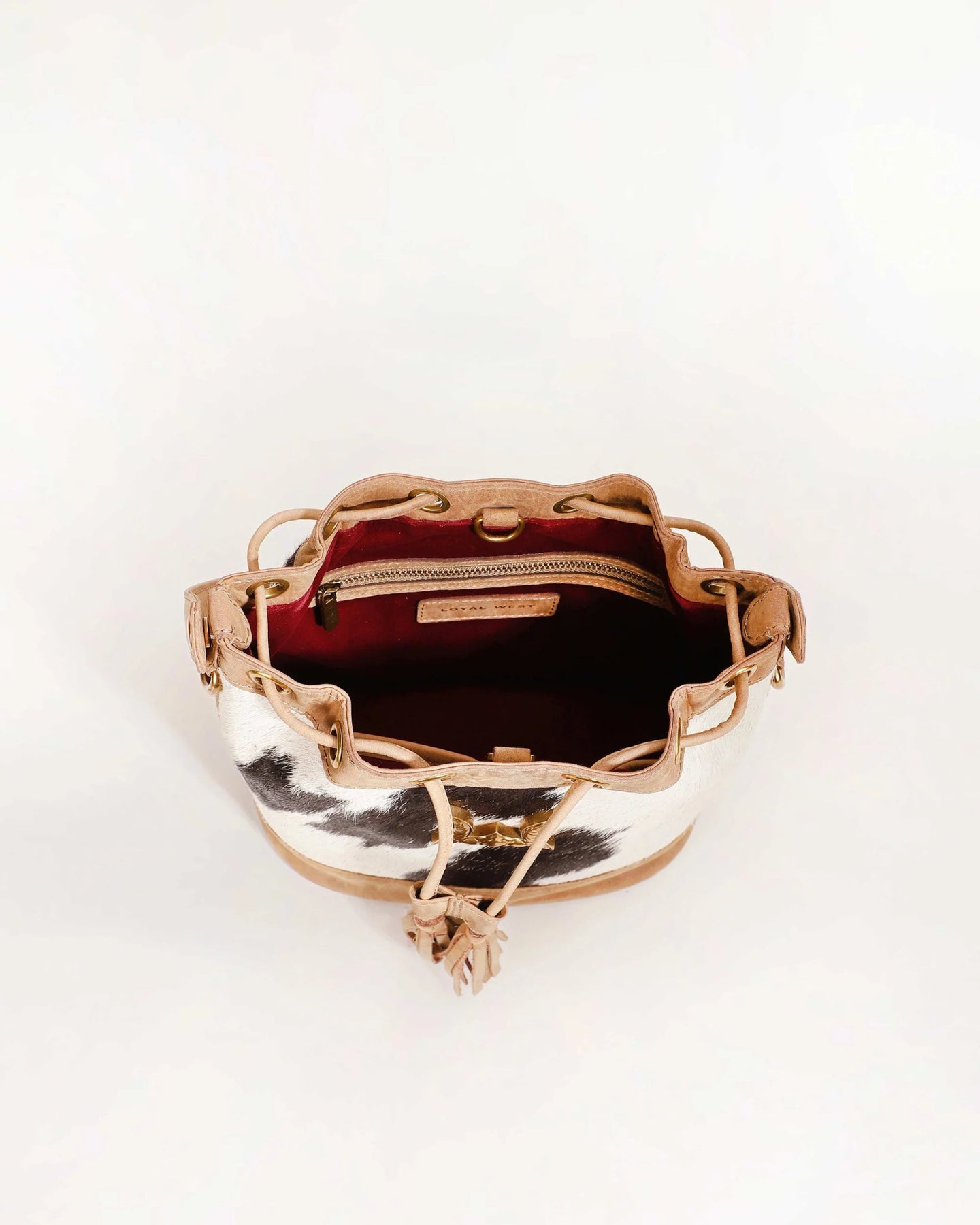 The LW Bucket Bag is a versatile crossbody bag made from premium hair on cowhide and smooth calfskin. Featuring a removable shoulder strap for customizable wear, this bag blends rugged charm with a refined, sophisticated design.