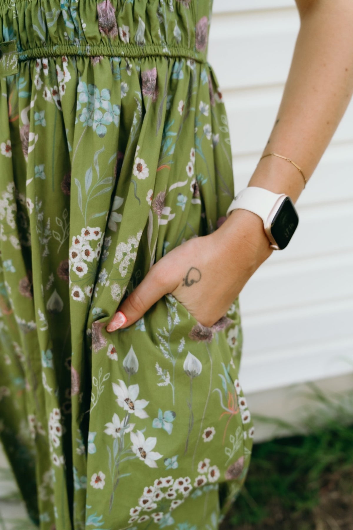 Fresh-picked florals in the dreamiest olive hue—this midi dress brings charm, comfort, and sweet Southern vibes all in one twirl-worthy piece.