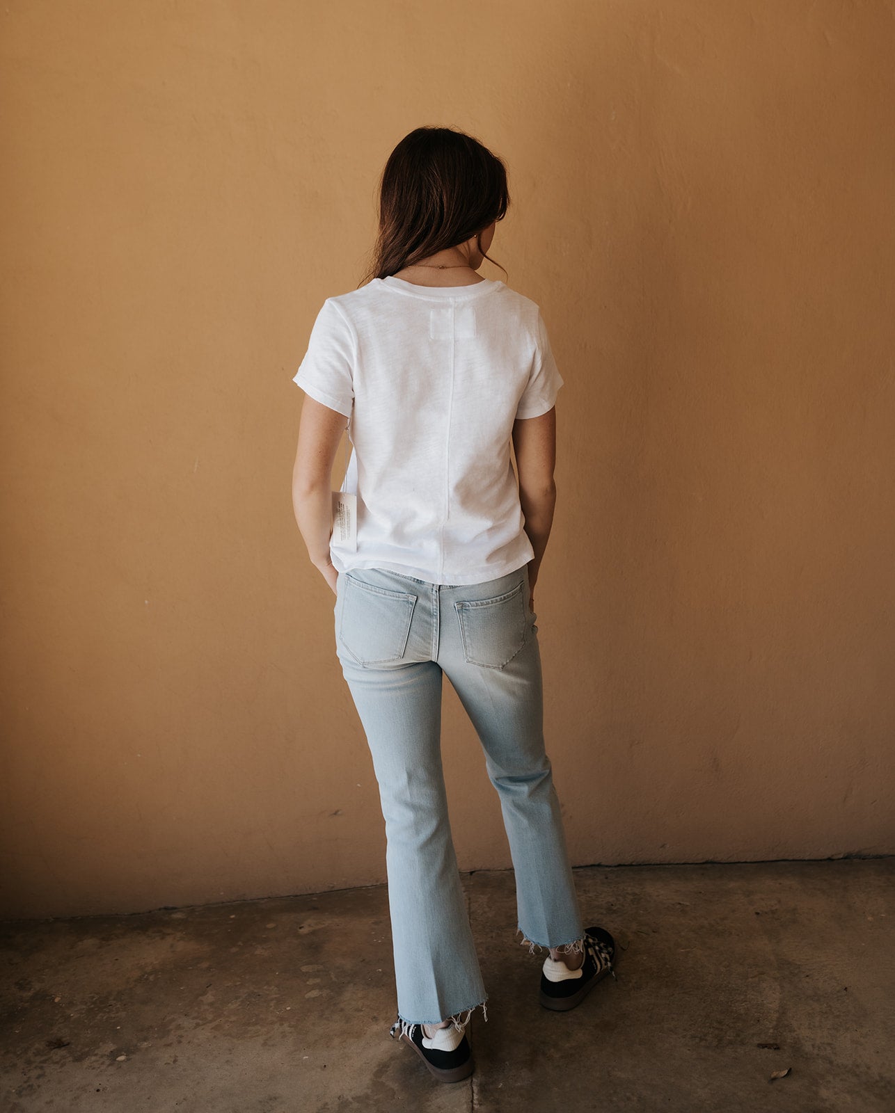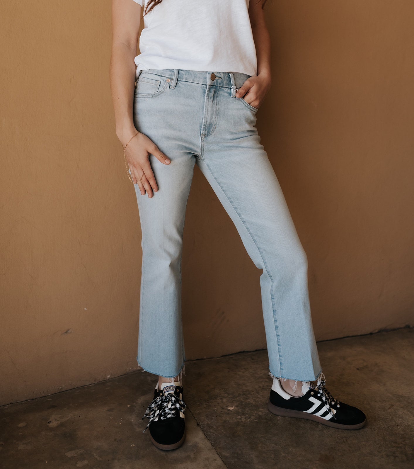 Style with a simple tee and sneakers for a clean, everyday outfit, or pair with a dressier blouse and flats for an effortless polished look.