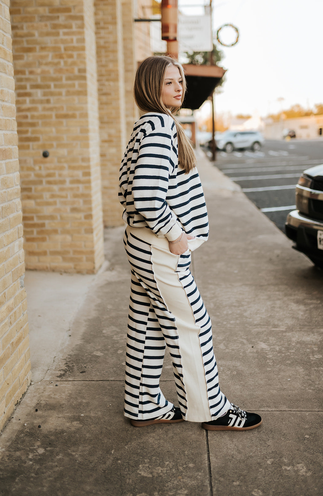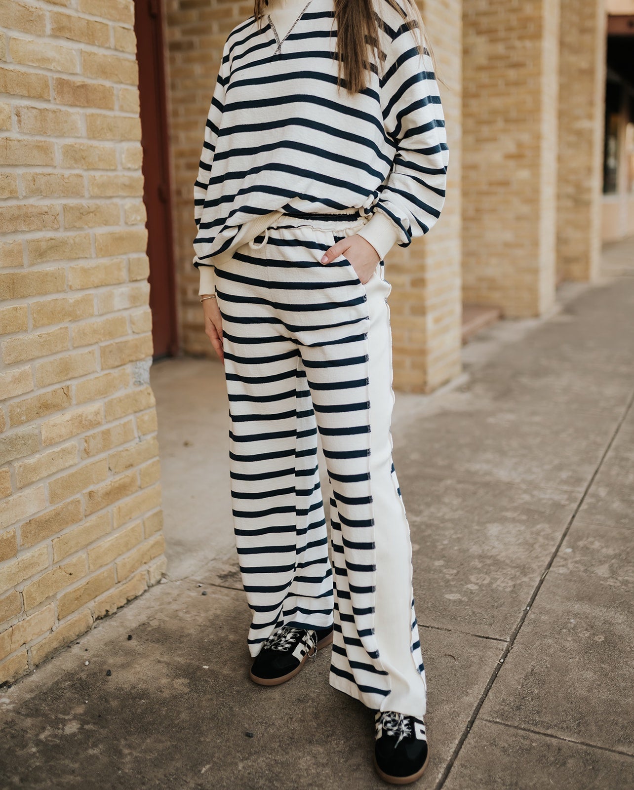Navy/Cream Drawstring Stiped Sweatpants P5720-1A