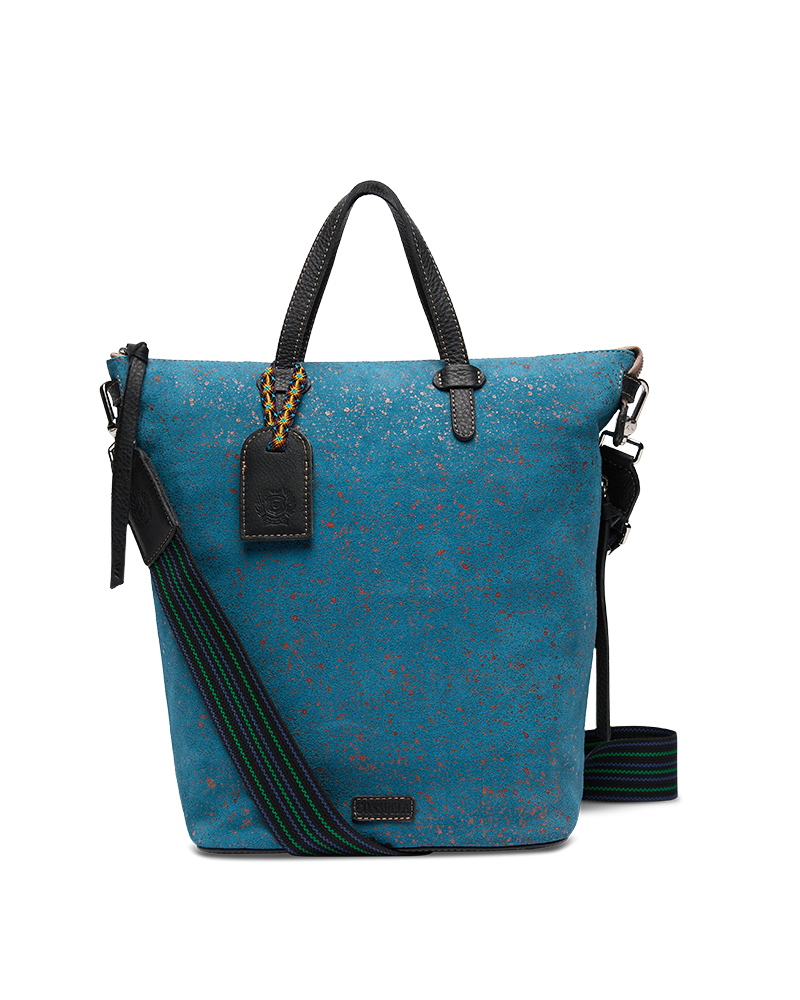 Designed for maximum versatility, the Nilo Sling can be worn three ways: as a crossbody, over the shoulder, or carried by its leather handles. Crafted in slate blue suede with bronze metallic flecks and trimmed in rich black leather, this bucket bag balances laid-back style with everyday function.