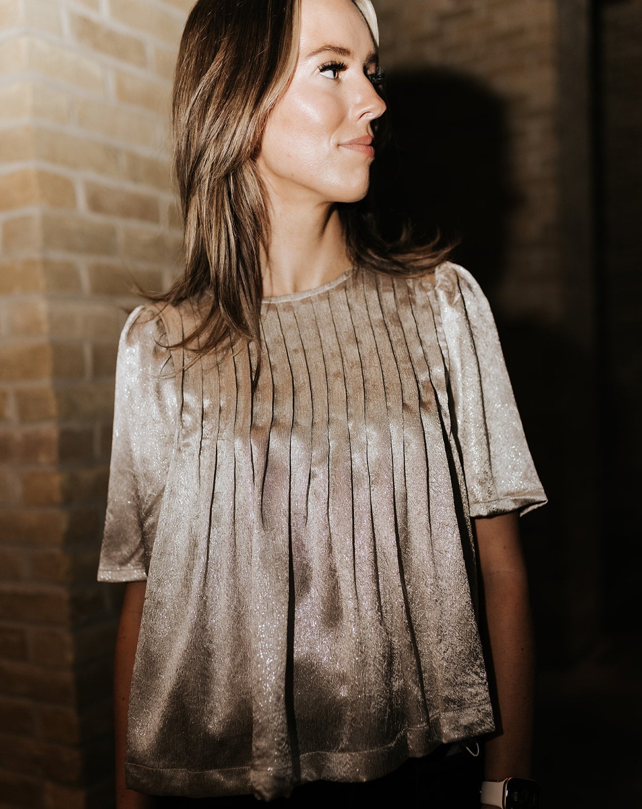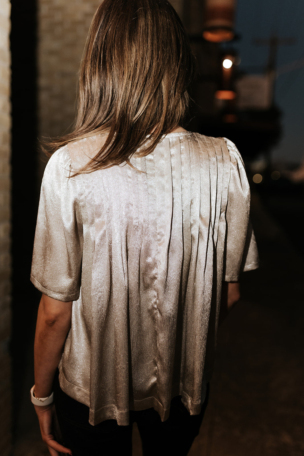 Pleated Detail Silver Metallic Top