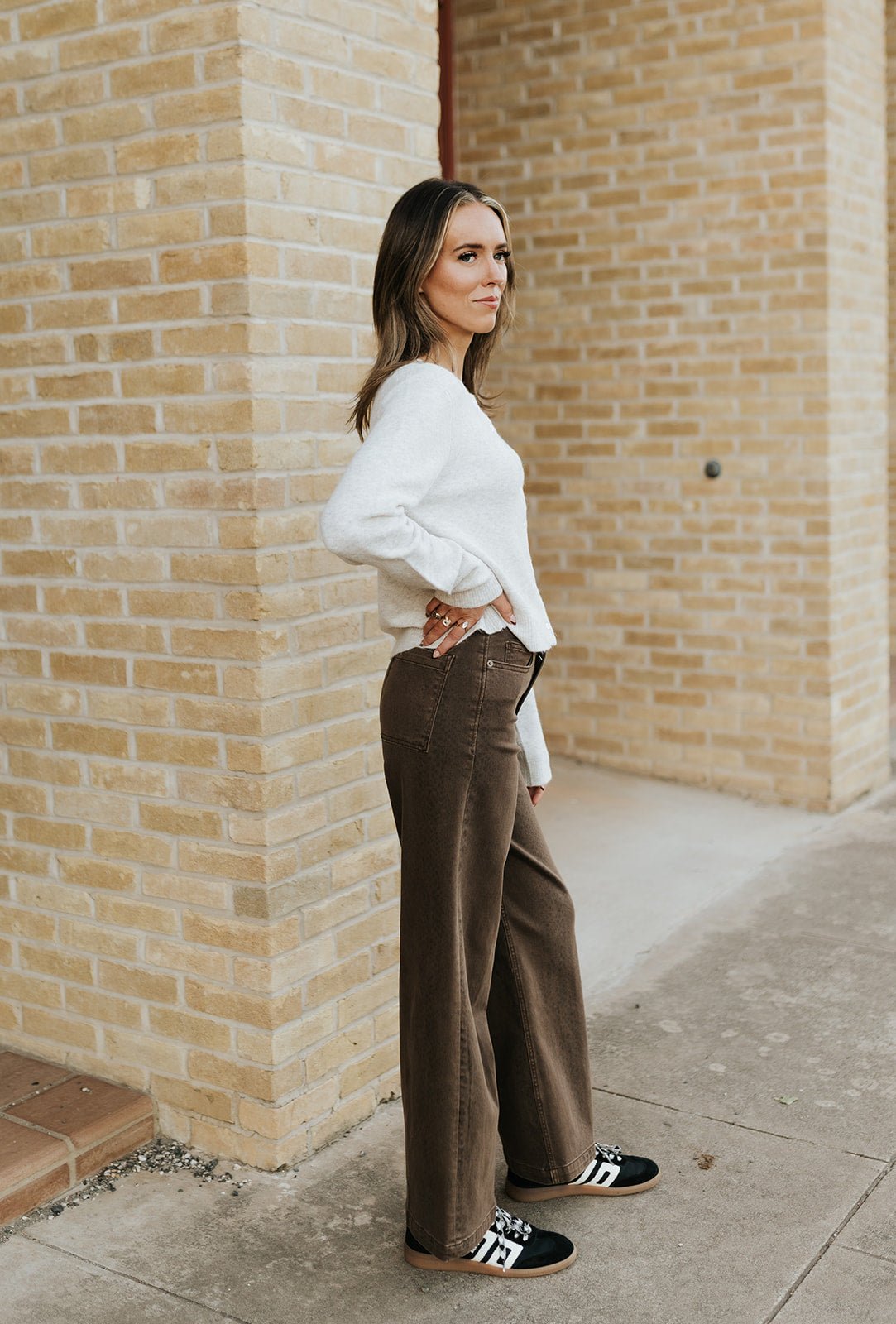 Tuck in a fitted top or our Oatmeal Medina Cardigan to define the waist and let the wide leg make its statement. Perfect with sneakers, sandals, or boots.