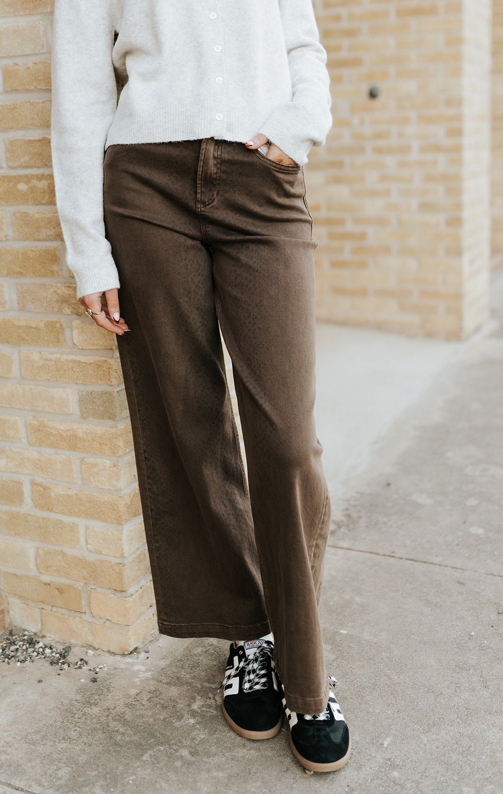 A bold take on a classic silhouette — the Python Audrey Wide Leg Jean features a rich brown wash with a soft, comfortable stretch. The wide-leg cut creates a flattering shape that moves with you, making it a must-have jean for elevated everyday style.