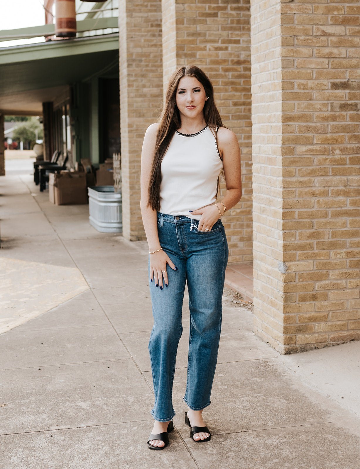 Pair with high-rise denim and gold jewelry for an easy daytime look, or layer under a blazer for a chic, casual night-out outfit.
