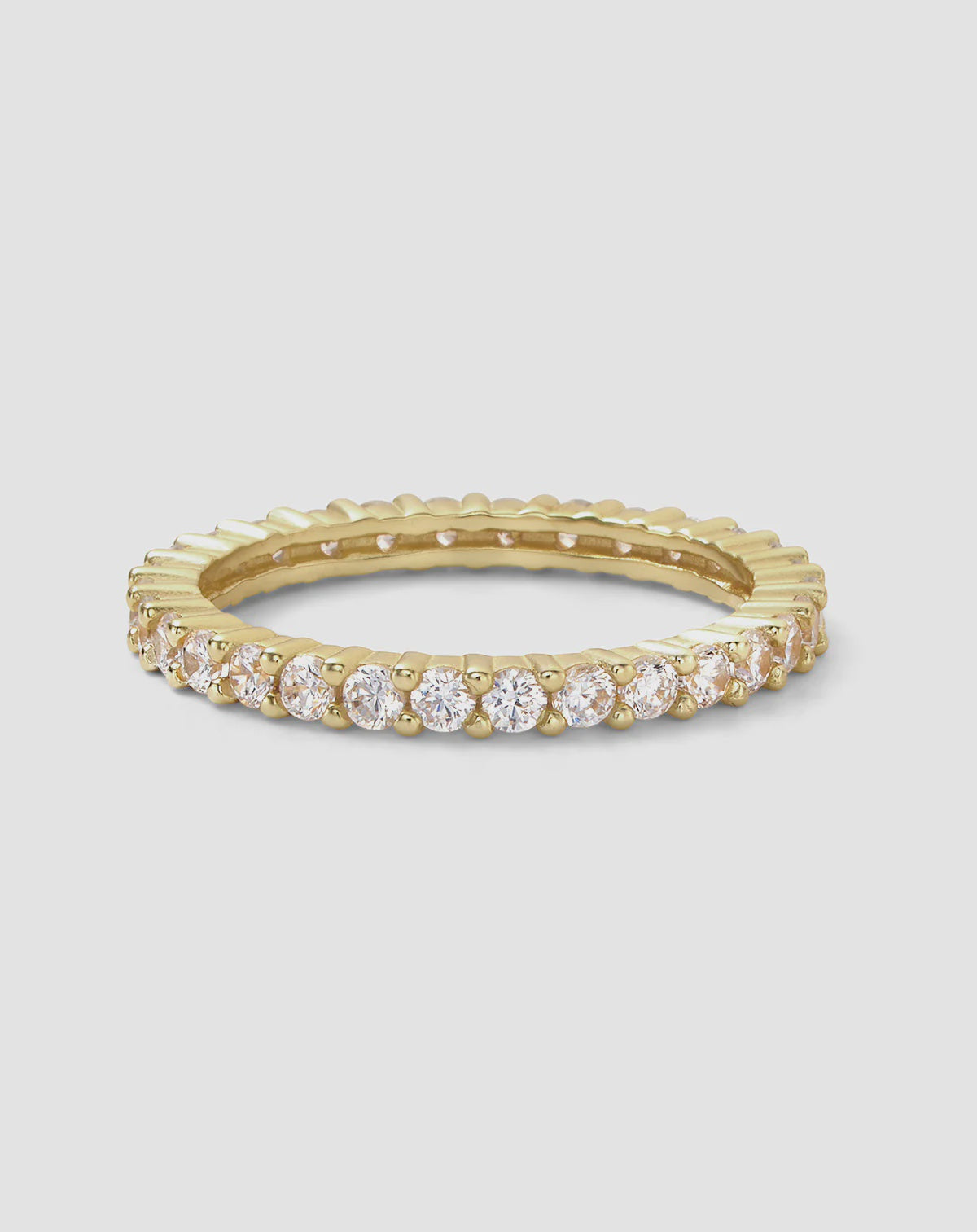 Style: Dainty band ring with simulated diamonds
