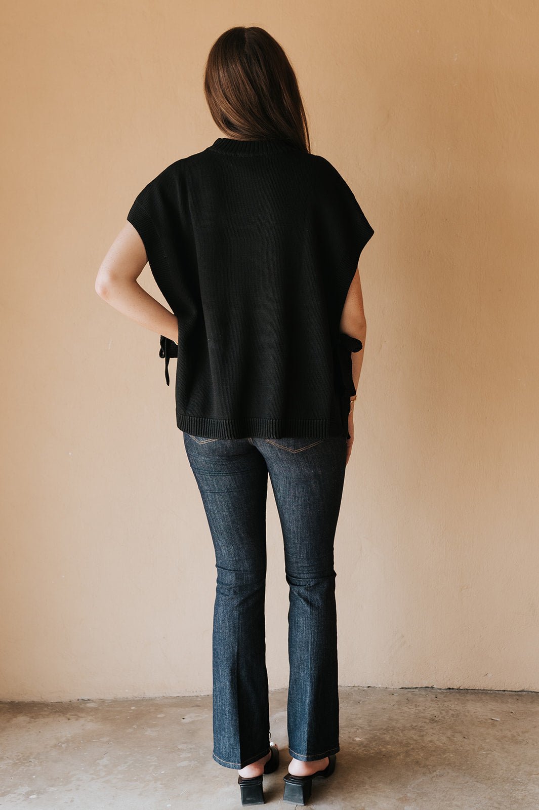 Your layering game just got easier. The Tie Sweater Vest in black brings a modern, structured feel to any outfit with side-tie details that add just the right touch of shape and style.